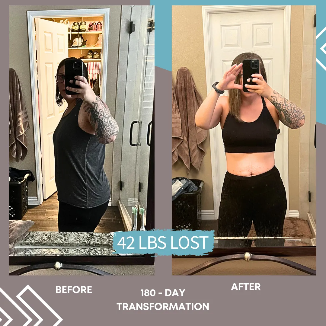 "I thought weight loss meant just gym time, but learning food timing, trigger swaps, and committing to the process helped me drop 40+ lbs and feel unstoppable." - Meggan k.